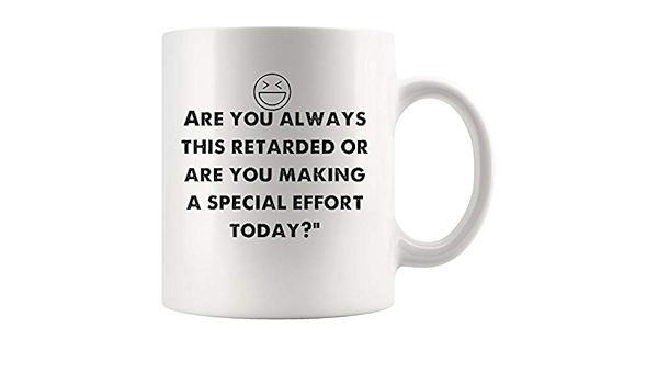 Amazon Com Are You Retarded Or Making Special Effort Today Funny Mugs Joke Coffee Mug Gag Sarcasm Tea Beer Cup Sarcastic Quotes Meme Humor For Men Women Kids Gift Fun Sayings Humorous - Now uv started readin dis dunt stop this is so scary.