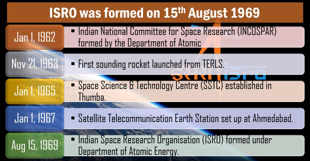 Isro Established / Isro was formed on august 15, 1969.