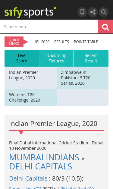 Sify Cricket Online Scoreboard Sify Cricket Online Scoreboard - Besides offering scoreboards, we offer player stats & cloud scoring for cricket matches.